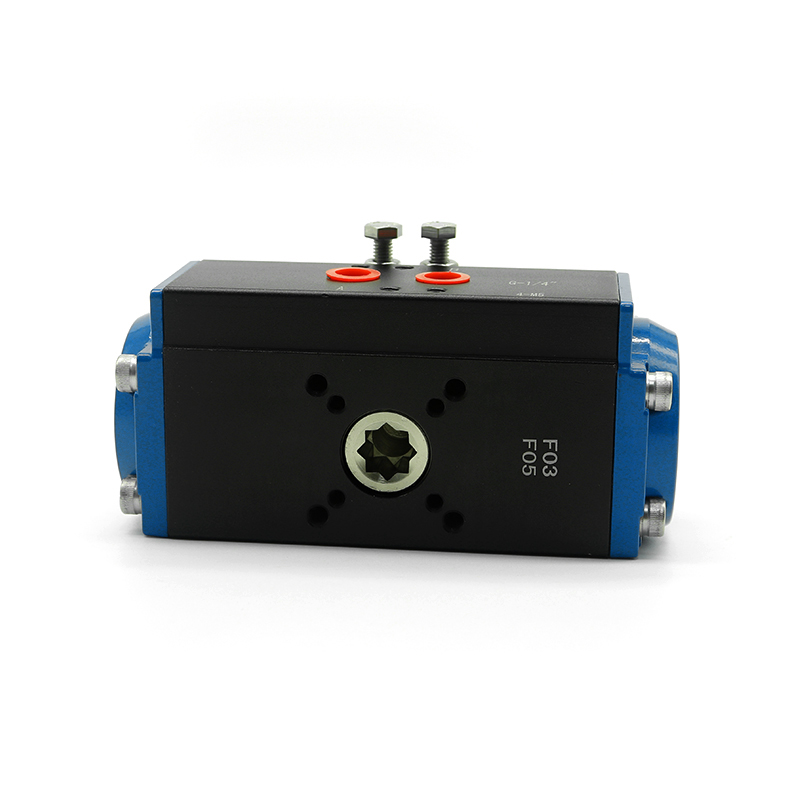 Cloíonn barr an actuator neomatach dúbailte le suiteáil chaighdeánach VDI/VDE 3845, atá áisiúil chun suíomh a shuiteáil, lasc teorann, agus gabhálais eile.