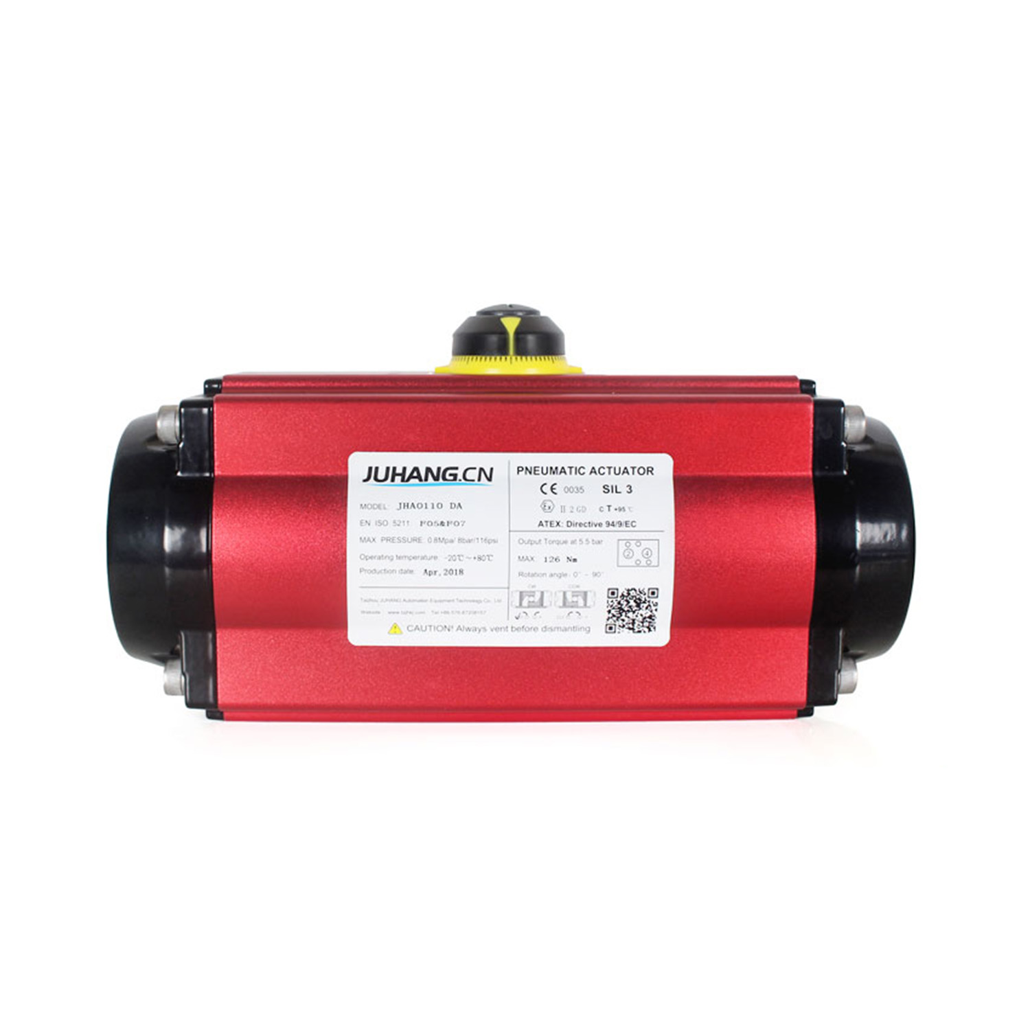 RACK AGUS PINION ACTUATOR NEUMATIC DOUBLE ag gníomhú di JHA0110DA Tá na saintréithe thíos ag JHA0110DA: